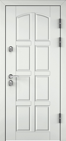 Белая входная дверь с закрытым коробом №23 идеально подойдет для тех, кто ценит простоту и надежность. Внешняя и внутренняя отделка из плит МДФ придают двери сдержанную элегантность, устойчивую к внешним механическим повреждениям. Конструкция из профильной трубы 50х25 мм и металла толщиной 2 мм гарантирует долговечность и прочность. Ребра жесткости, выполненные из профильных труб 40х25 мм, придают дополнительную стабильность. Два контура резинового уплотнителя обеспечивают отличную герметичность, а блокираторы повышают безопасность. Хотя шумоизоляция не предусмотрена, она может быть добавлена по запросу. Несмотря на отсутствие терморазрыва, дверь обеспечивает хорошую теплоизоляцию благодаря терморазрыву коробки и полотна. Эта модель подойдет для установки в местах, где важна надежность и современный внешний вид. Белая входная дверь с закрытым коробом №23 от производителя: быстрое изготовление и монтаж в Москве, индивидуальные размеры, широкий выбор материалов и фурнитуры, официальная гарантия до 10 лет.