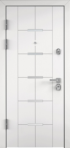 Белая входная дверь стандартная №36 идеально подходит для тех, кто ищет простоту и надежность. Внешняя и внутренняя отделка из МДФ накладки придает дверям элегантный и современный вид, сочетая прочность и долговечность. Материал отделки отличается устойчивостью к механическим повреждениям и воздействию внешней среды, сохраняя при этом привлекательный внешний вид. Каркас из профильной трубы с толщиной металла 2 мм и ребра жесткости гарантируют необходимую прочность и безопасность, а блокираторы обеспечивают дополнительную защиту. Входная дверь оснащена двухконтурным резиновым уплотнителем, что помогает сохранять тепло и защищать от внешних шумов. Замки модели Просам и Мосрентген с тремя ригелями обеспечат надежную защиту вашего дома или офиса. Дверь также может быть дополнена зеркалом, стеклопакетами и коваными элементами, а также оснащена видеодомофоном, что делает модель №36 универсальным решением для любых нужд. Белая входная дверь стандартная №36 от производителя: быстрое изготовление и монтаж в Москве, индивидуальные размеры, широкий выбор материалов и фурнитуры, официальная гарантия до 10 лет.