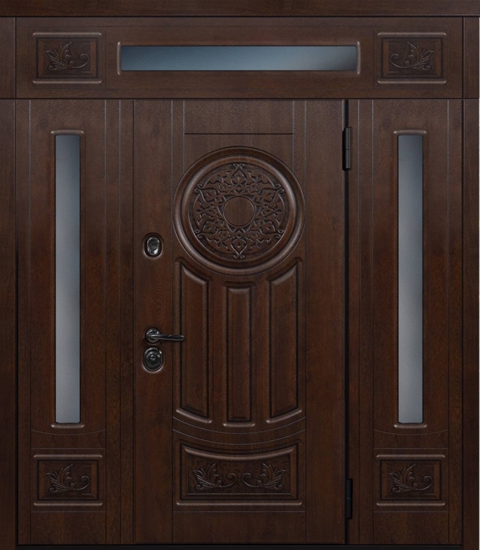 Эта нестандартная парадная дверь с фрамугой №6 — отличный выбор для тех, кто ценит элегантность и долговечность. Внешняя и внутренняя отделка из МДФ придает дверям стильный и современный вид, а также защиту от механических повреждений. МДФ устойчива к царапинам и вмятинам, что делает дверь идеальной для долгосрочной эксплуатации. Каркас из профильной трубы 50х25 мм и лист металла толщиной 2 мм обеспечивают прочность и надежность, а ребра жесткости из профильных труб гарантируют дополнительную устойчивость. В двери установлены блокираторы, два контура уплотнителей из резины, что повышает звуко- и теплоизоляцию. Замки от известных производителей, таких как Просам и Мосрентген, обеспечат надежную защиту. Возможность комбинировать отделку, добавлять зеркало, стеклопакет или кованые элементы позволяет легко адаптировать дверь под любые предпочтения. Нестандартная парадная дверь с фрамугой №6 от производителя: быстрое изготовление и монтаж в Москве, индивидуальные размеры, широкий выбор материалов и фурнитуры, официальная гарантия до 10 лет.
