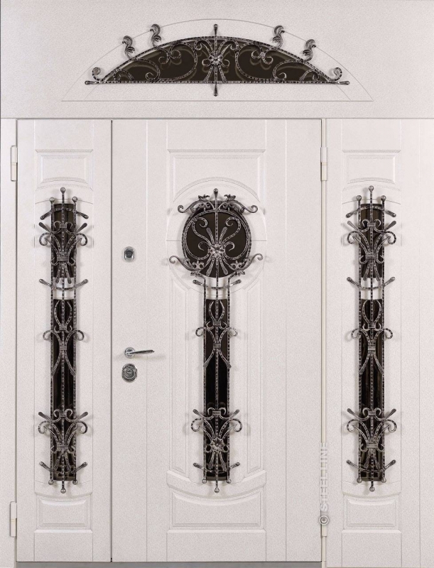 Входная дверь с кованой ручкой и фрамугой №6 представляет собой элегантное и надежное решение для тех, кто ценит не только безопасность, но и стиль. Эта модель идеально подойдет для оформления парадных входов в дома и офисы. Внешняя отделка из плиты МДФ придает двери современный и чистый вид, который сохраняется долго благодаря стойкости к внешним воздействиям. Благодаря профильной трубе с толщиной металла 2 мм и ребрам жесткости, конструкция двери гарантирует прочность и долговечность. Дополнительный элемент — кованая ручка, которая добавляет изысканности и подчеркивает высокий класс изделия. Стандартная комплектация не включает шумо- и теплоизоляцию, однако она может быть установлена по желанию. Резиновый уплотнитель с двумя контурами обеспечит хорошую герметичность, защищая от ветра и пыли. Подходит для установки как в частных домах, так и в офисах, привлекая внимание своим необычным и стильным дизайном. Входная дверь с кованой ручкой и фрамугой №6 от производителя: быстрое изготовление и монтаж в Москве, индивидуальные размеры, широкий выбор материалов и фурнитуры, официальная гарантия до 10 лет.