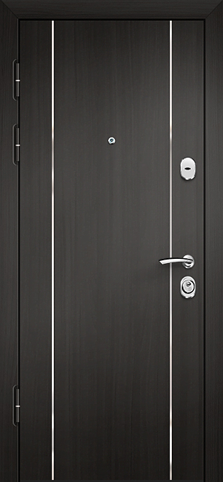Металлическая входная дверь с отделкой Экошпон №6 в цвете Венге – идеальный выбор для тех, кто ценит практичность и стиль. Эта дверь с панелями МДФ ПВХ не только выглядит элегантно, но и обладает отличными эксплуатационными характеристиками. Внешняя отделка устойчива к механическим повреждениям, а также долговечна, что гарантирует сохранение её привлекательного вида на долгие годы. Размеры двери могут быть адаптированы под любые потребности клиента, а каркас из профильной трубы 50х25 мм обеспечивает надёжность и прочность конструкции. Два контура уплотнения обеспечивают минимальное проникновение холодного воздуха и посторонних шумов. В двери предусмотрены два надежных замка: сувальдный и цилиндровый, что делает её безопасной для установки в любых условиях. Входная дверь в квартиру Венге с покрытием Экошпон №6 от производителя: быстрое изготовление и монтаж в Москве, индивидуальные размеры, широкий выбор материалов и фурнитуры, официальная гарантия до 10 лет.