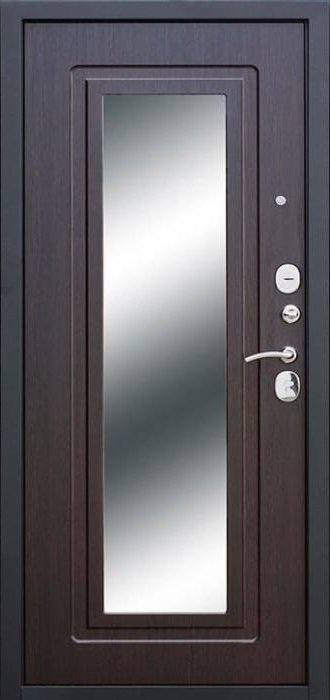 Дверь наружная с покрытием под дерево №3 — это стильное и надежное решение для вашего частного дома, квартиры или офиса. Конструкция двери включает прочный каркас из профильной трубы и металл толщиной 2 мм, что гарантирует долговечность и защиту от внешних воздействий. Внешняя и внутренняя отделка выполнены из плиты МДФ, что придает двери эстетичный вид и устойчивость к механическим повреждениям. Декор в виде зеркала подчеркивает её элегантность, а блокираторы и высококачественные замки (Просам и Мосрентген) обеспечивают высокий уровень безопасности. Дверь также оснащена двумя контурами уплотнения, что способствует хорошей изоляции. Возможность добавить стеклопакет, кованые элементы или видеодомофон делает этот продукт еще более универсальным и практичным для различных типов объектов. Дверь наружная с покрытием под дерево №3 от производителя: быстрое изготовление и монтаж в Москве, индивидуальные размеры, широкий выбор материалов и фурнитуры, официальная гарантия до 10 лет.