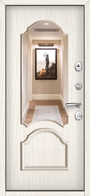 Входная дверь с зеркальной вставкой для прихожей №21 — это не просто надежное, но и стильное решение для частных домов, квартир и офисов. Благодаря прочному каркасу из профильной трубы 50х25 мм и металлическому полотну толщиной 2 мм, дверь гарантирует долговечность и высокую степень защиты. Внешняя отделка с порошковым напылением не только добавляет эстетичности, но и защищает от атмосферных воздействий, а внутренняя отделка из панелей МДФ ПВХ устойчива к механическим повреждениям. Вставка зеркала на двери добавляет современности и практичности, расширяя пространство прихожей. Два контура резинового уплотнителя эффективно предотвращают попадание холода и шума. Дверь оборудована двумя замками, что повышает безопасность. Также можно заменить замки на более современные модели и добавить опции, такие как стеклопакет или видеодомофон, что делает эту модель еще более универсальной. Входная дверь с зеркальной вставкой для прихожей №21 от производителя: быстрое изготовление и монтаж в Москве, индивидуальные размеры, широкий выбор материалов и фурнитуры, официальная гарантия до 10 лет.