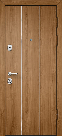 Современная входная металлическая дверь для частного дома №25 сочетает в себе стиль и надежность, что делает ее отличным выбором для частных домов, квартир и офисов. Благодаря прочной конструкции с каркасом из профильной трубы 50х25 мм и металлическим полотном толщиной 2 мм, она обеспечивает долгосрочную эксплуатацию и высокую защиту. Внешняя и внутренняя отделка выполнены из МДФ, что придает двери элегантный и современный вид, устойчивый к механическим повреждениям и воздействию внешней среды. Ребра жесткости из профильных труб 40х25 мм усиливают конструкцию, а два контура резинового уплотнителя эффективно защищают от проникновения холода и шума. В этой модели предусмотрены два замка (сувальдный и цилиндровый), что повышает уровень безопасности. Дополнительные опции, такие как установка зеркала, стеклопакета или кованых элементов, позволяют адаптировать дверь под любые интерьерные решения. Современная входная металлическая дверь для частного дома №25 от производителя: быстрое изготовление и монтаж в Москве, индивидуальные размеры, широкий выбор материалов и фурнитуры, официальная гарантия до 10 лет.