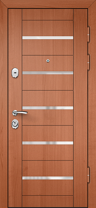 Современная входная дверь с цилиндровым замком №21 сочетает строгую надежность металлической конструкции и аккуратный внешний вид. Каркас из профильной трубы и лист стали толщиной 2 мм образуют прочный щит, усиленный ребрами жесткости и блокираторами. Накладки из МДФ придают полотну более «домашний» облик: материал не только эстетичен, но и практичен — ПВХ-покрытие стойко переносит небольшие повреждения и сохраняет первозданный вид долгие годы. Такая дверь подходит для квартиры, офиса или частного дома, где важно совместить защиту и стиль. Цилиндровый замок обеспечивает удобное и надежное закрывание, а два контура резинового уплотнителя защищают от сквозняков и лишнего шума. При желании возможно дополнить конструкцию тепло- и шумоизоляцией или установить замки другого типа, включая современные электронные системы. Современная входная дверь с цилиндровым замком №21 от производителя: быстрое изготовление и монтаж в Москве, индивидуальные размеры, широкий выбор материалов и фурнитуры, официальная гарантия до 10 лет.